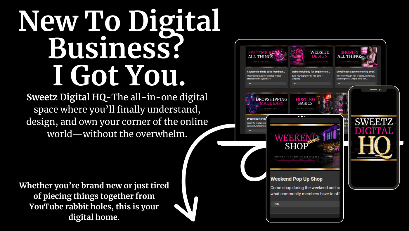 Sweetz Digital HQ is your go-to creative space for turning beginners into bold digital entrepreneurs.